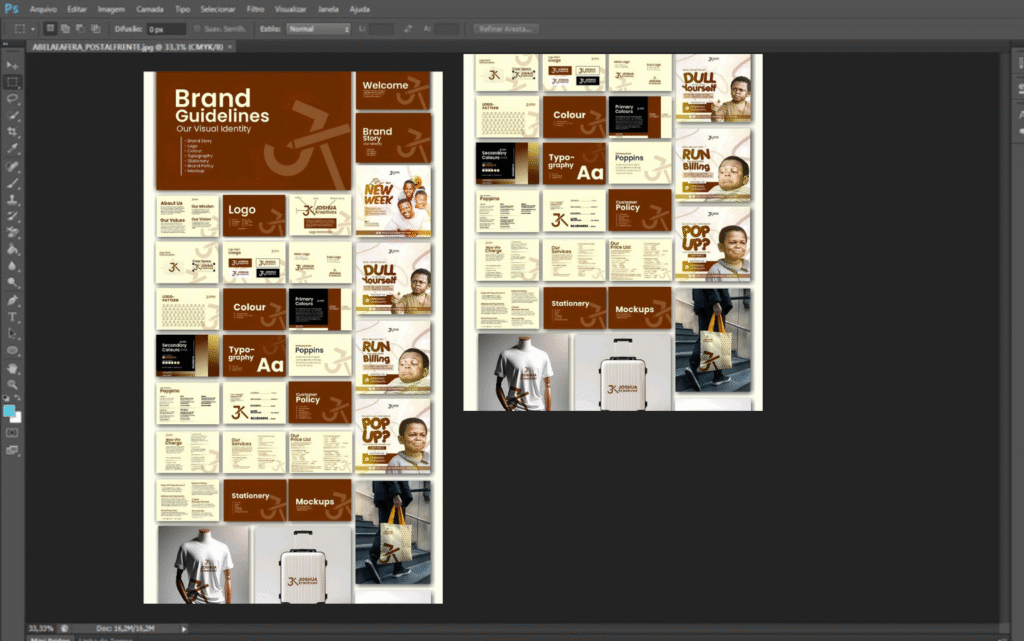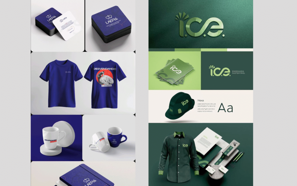 Uma estrutura completa e profissional para entregar identidades visuais com alto padrão, destacando aplicações, diretrizes e consistência visual que aumentam o valor do seu trabalho.